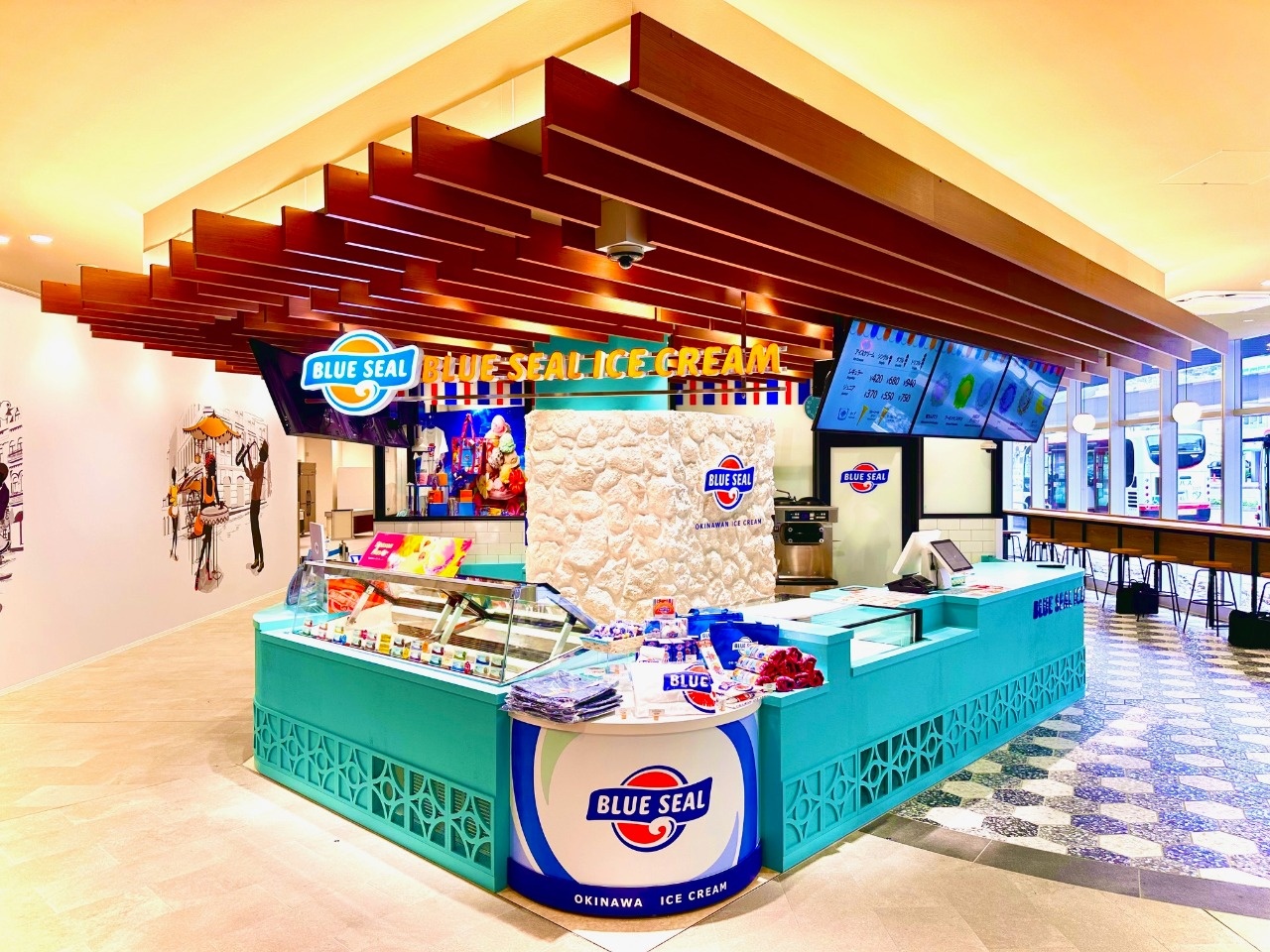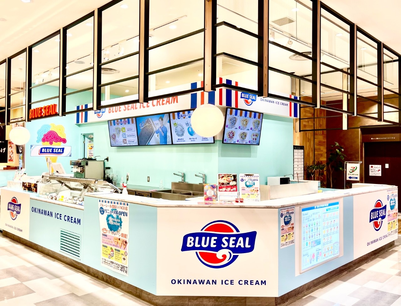 東海名古屋エリア初出店の、名古屋柴田店、名古屋栄店、名古屋駅エスカ店を経営。沖縄で有名なブルーシールアイスクリーム、沖縄特有な変わったフレーバーが大人気で、他にもソフトクリーム、クレープ、フローズンなどを提供。持ち帰り用カップアイスやオリジナルグッズも人気!